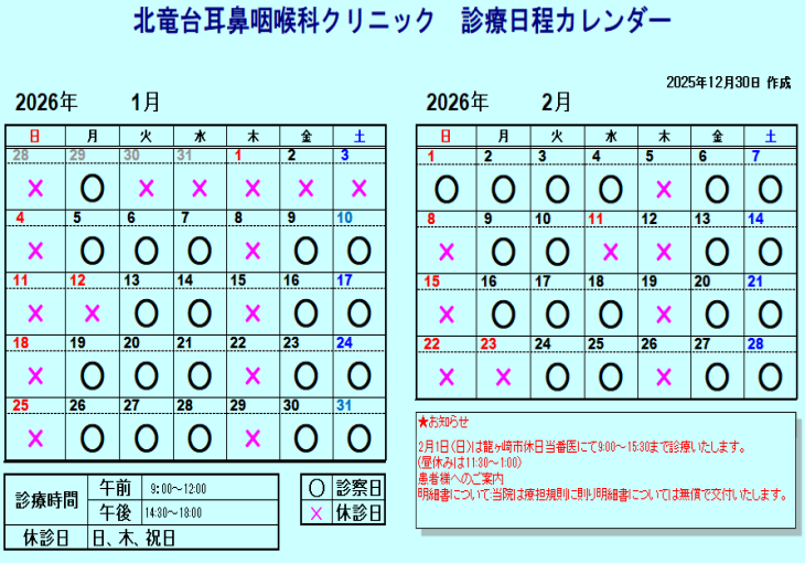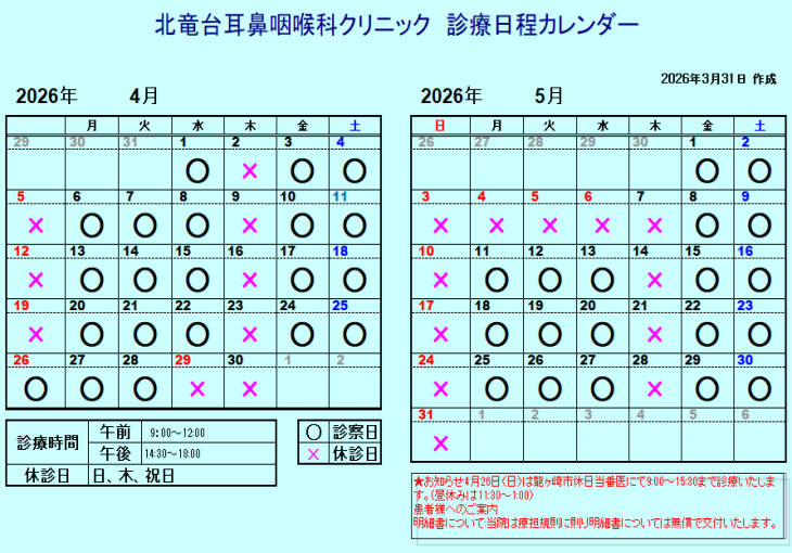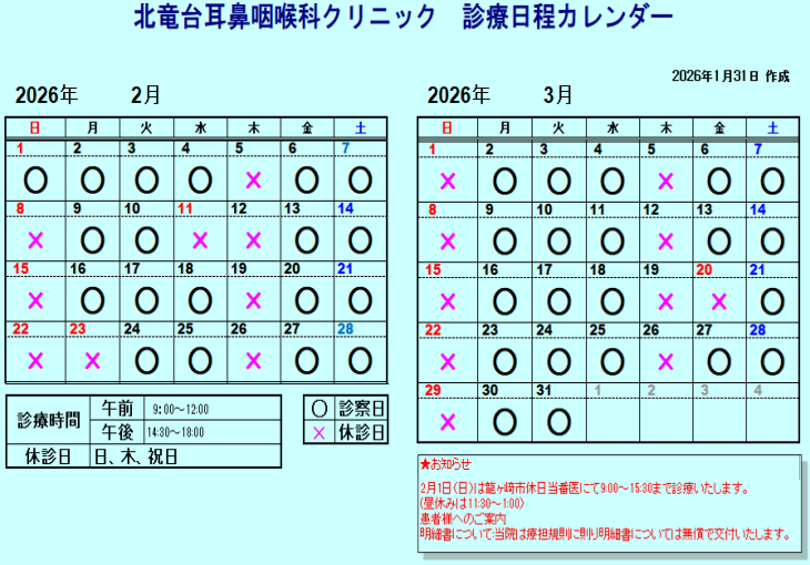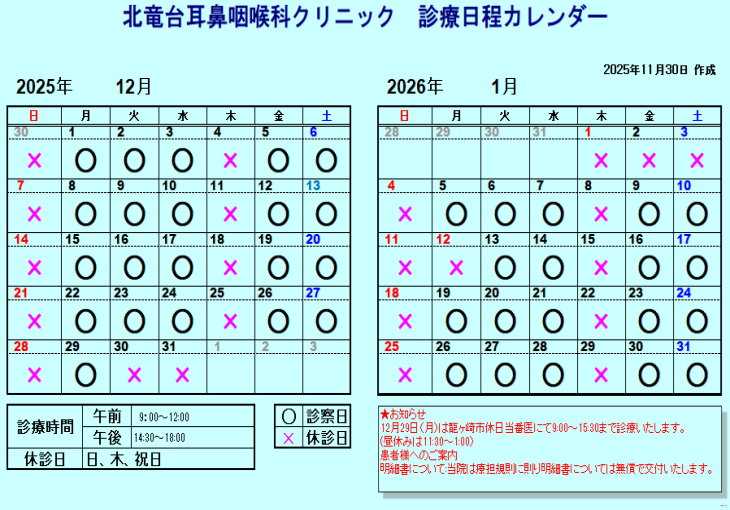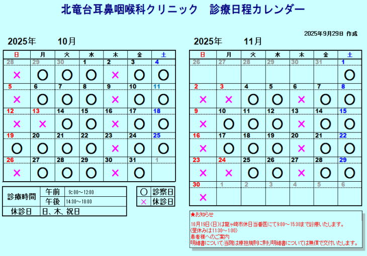 診療予定表