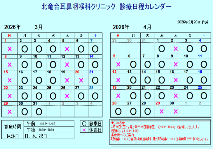 診療予定表